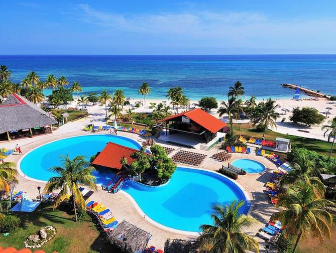 De vlag van Cuba wappert vrolijk bij Hotel Brisas Guardalavaca. En waarom ook niet, met zoveel gezelligheid binnen haar felgekleurde muren. Rustzoekers logeren in het bungalowdeel, anders kies je voor de hotelkamers. Bestel een mojito of vers mangosapje en relax op de geel-rood-blauwe ligbedden bij een van de twee zwembaden. Wel zo relaxed, het 24 uurs Ultra All Inclusive programma. Vandaag organiseert het enthousiaste animatieteam een lesje 'Hoe & Wat in het Cubaans' op het strand. Wie weet kun je vanmiddag dan met wat locals in Guardalavaca kletsen. Het centrum is klein, maar wel gezellig. En wil je meer van het eiland zien, stap dan in een paard-en-wagen of oldtimer buiten het hotel en proef het Cubaanse leven. Laat je verrassen!