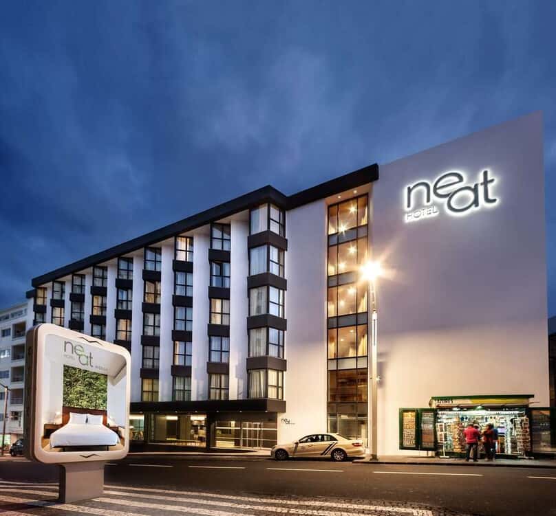 Stijlvol verblijf in hartje Ponta Delgada NEAT Hotel Avenida ligt in het bruisende centrum van Ponta Delgada, de hoofdstad van São Miguel op de Azoren. Dit moderne en eigentijdse hotel biedt comfortabele kamers met een strak design en alle nodige faciliteiten voor een ontspannen verblijf. Geniet van een heerlijk ontbijt, ontdek de sfeervolle binnenstad of ontspan in de lounge. Met zijn centrale ligging is NEAT Hotel Avenida de perfecte uitvalsbasis om het eiland te verkennen.