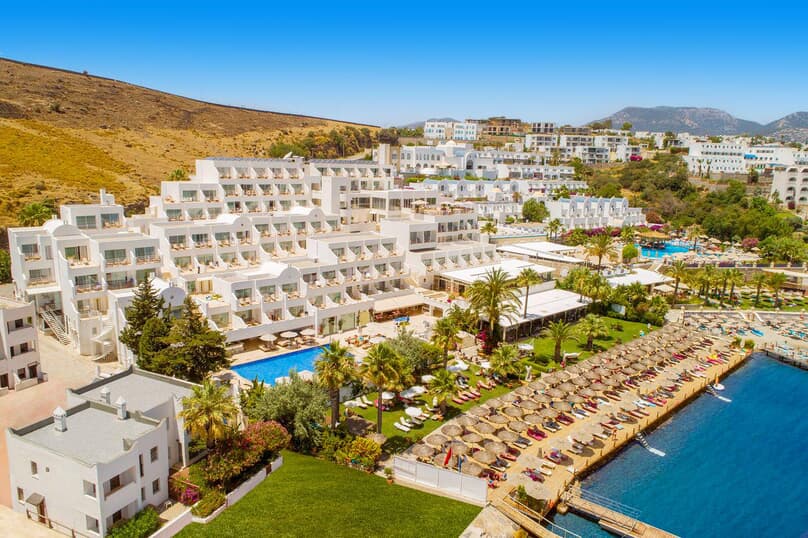 Hotel Prive Bodrum is een verfijnd 5-sterrenresort aan de schitterende Egeïsche kust van Turkije, waar comfort, stijl en rust samenkomen. Het resort ligt direct aan een privéstrand en biedt een adembenemend uitzicht op de helderblauwe zee. Gasten kunnen genieten van stijlvolle kamers met moderne faciliteiten, uitstekende gastronomie in de à-la-carterestaurants en een serene spa waar pure ontspanning centraal staat. Prive Bodrum staat garant voor een exclusieve ervaring, ideaal voor wie luxe en privacy zoekt tijdens een zonovergoten vakantie.