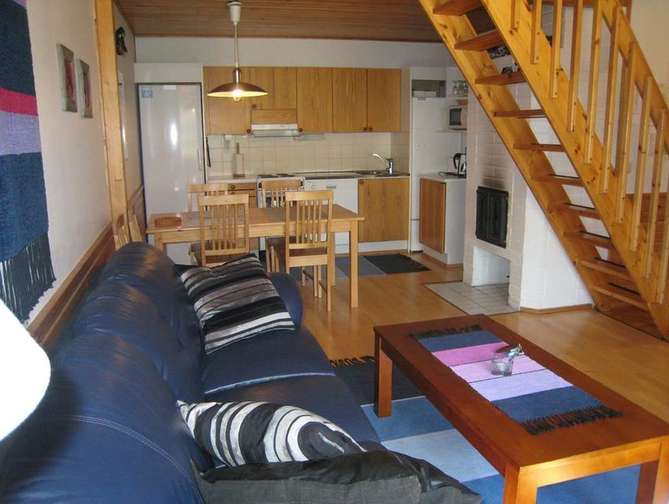 Deze appartementen liggen bij het centrum van Saariselkä. Appartementen zijn van individuele eigenaren, inrichting naar de locale smaak van de eigenaar. Het 3-kamerappartement heeft tevens een open haard.