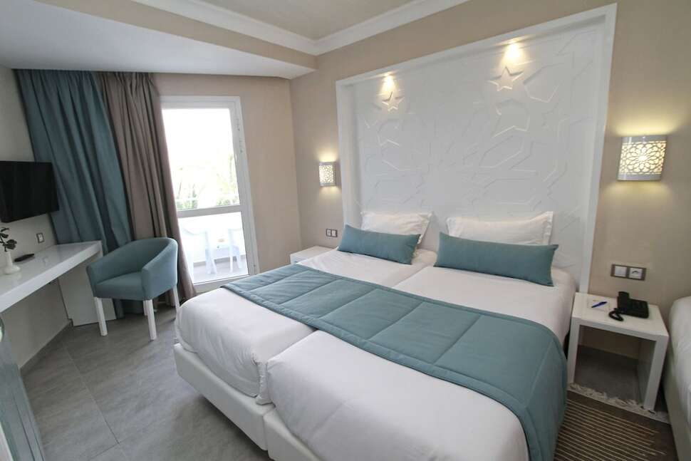 Sahara Beach Aquapark Resort is een levendig all-inclusive resort aan de prachtige kust van Monastir, Tunesië. Dit familievriendelijke hotel biedt een groot aquapark met glijbanen, meerdere zwembaden en directe toegang tot een uitgestrekt zandstrand. De comfortabele kamers, uitgebreide buffetten en diverse sport- en entertainmentmogelijkheden zorgen voor een onvergetelijke vakantie. Of je nu komt voor ontspanning aan het zwembad, actief bezig wilt zijn met watersporten of wilt genieten van een spectaculaire zonsondergang aan zee, dit resort heeft het allemaal.