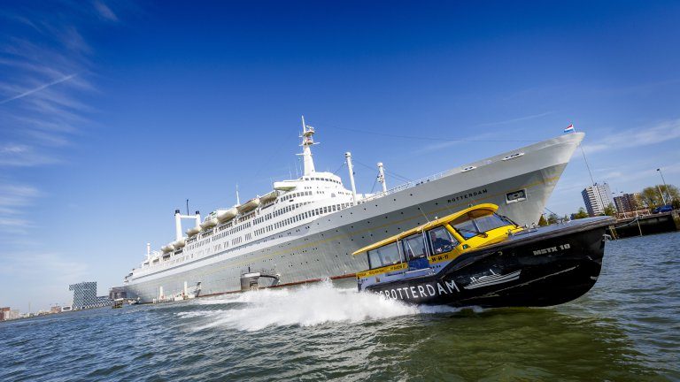 Het ss Rotterdam ligt aan de kop van Katendrecht in het centrum van Rotterdam, waar dit prestigieuze vlaggenschip een permanente ligplaats heeft. Het is mogelijk een rondleiding te doen over het schip, waarbij u een kijkje krijgt achter deuren die anders gesloten blijven. Vanuit het hotel heeft u een schitterend uitzicht over de Maas en de moderne skyline van Rotterdam met de eerste wolkenkrabbers van Nederland. Bezoek anders eens de eerste wolkenkrabber van Nederland, het Witte Huis. Vanwege deze hoge torens wordt Rotterdam ook wel ‘Manhattan aan de Maas’ genoemd. Rotterdam heeft nog meer bijzondere architectuur; bewonder zeker de Kubuswoningen en het Groothandelsgebouw.